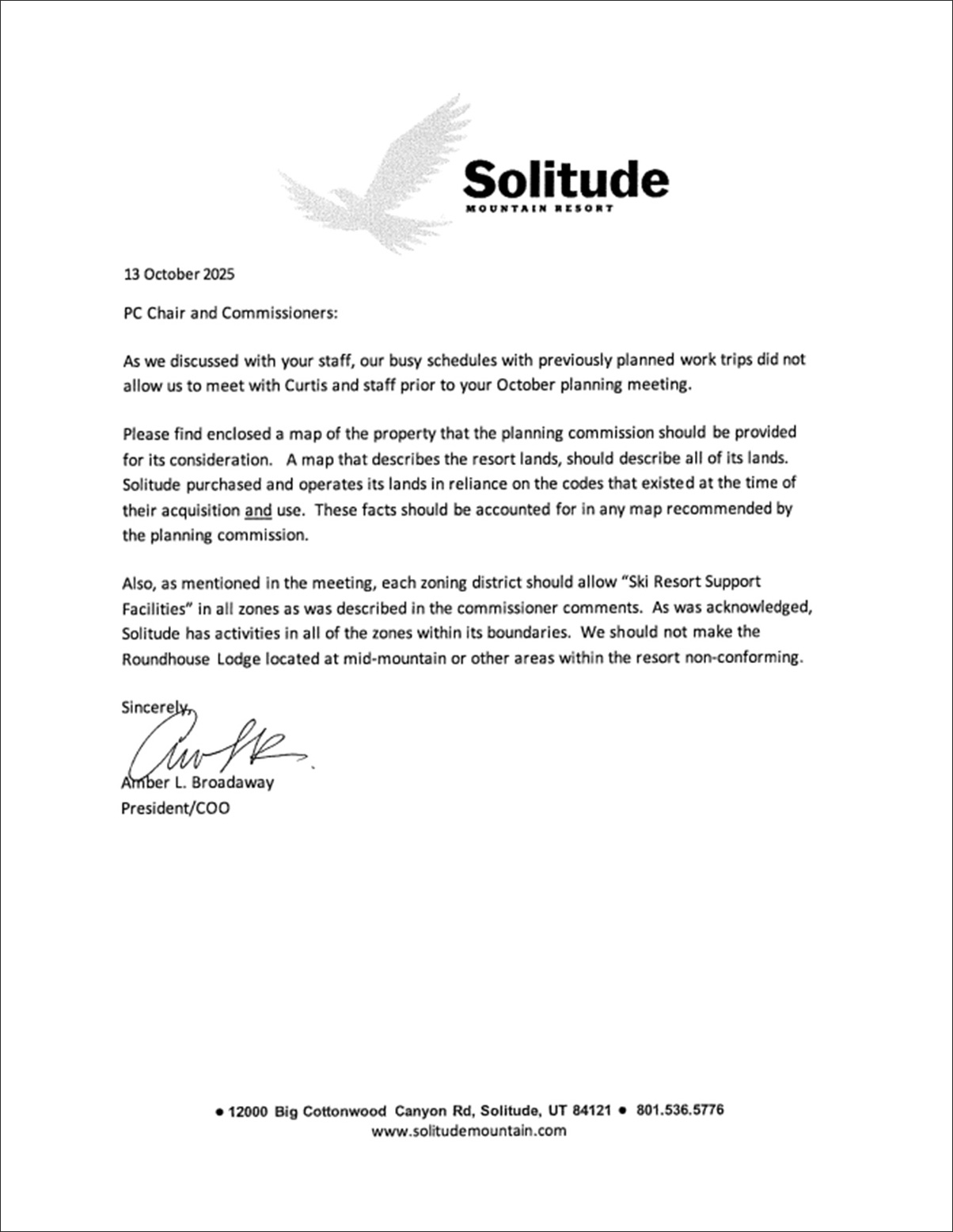 In a letter dated October 13, 2025, Solitude Mountain Resort submitted a new proposed ski resort boundary map to the Brighton Planning Commission: