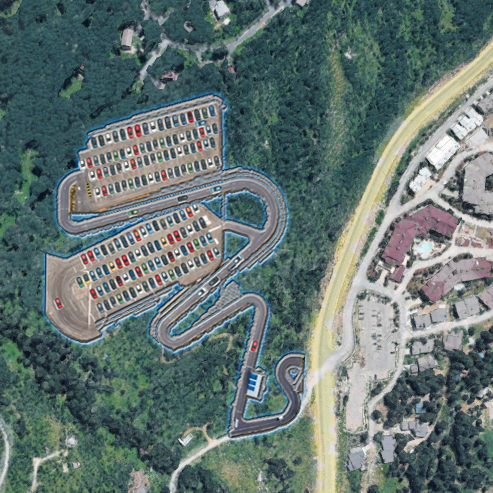 In its April 15, 2025 Conditional Use Permit application (PDF 5.7MB) to the Municipal Services District, Solitude proposes constructing an access road and two parking lots with a combined total of 593 spaces (by my count 268 in the upper lot and 315 in the lower lot).